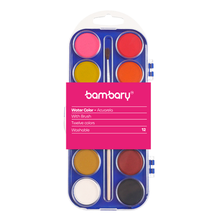 Water Color 12 Color Set 28 mm With Paint Brush Plastic Case 12 unt