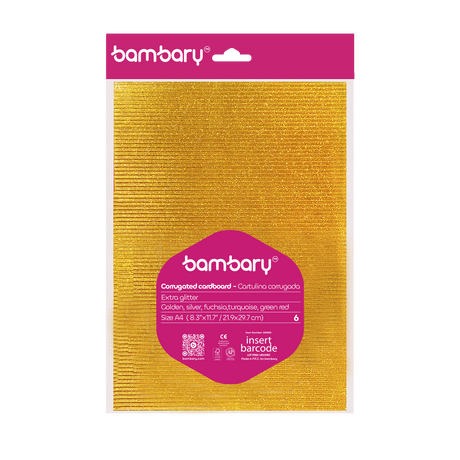 $187Precio unitarioAgotadoExtra Glitter Corrugated Cardboard A4 210 x 297 mm Base 256 g Bag x 6 Unt Multicolor